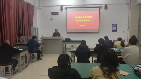 为深入落实《关于加强高校课堂教学建设提高教学质量的指导意见》,贯彻落实立德树人根本任务,加强课堂教学管理,建设优良的教风、学风,提高课堂教学质量,智能制造工程教研室全体教师于11月27日在知行楼115实验室组织学习山东华宇工学院课堂教学管理规定相关内容,重点学习教学事故认定及处理办法、qy千亿球友会调课管理规定、qy千亿球友会教师教学工作制度汇编、qy千亿球友会关于教案编写的实施方法和qy千亿球友会辅导答疑管理规定。